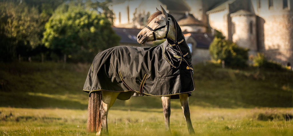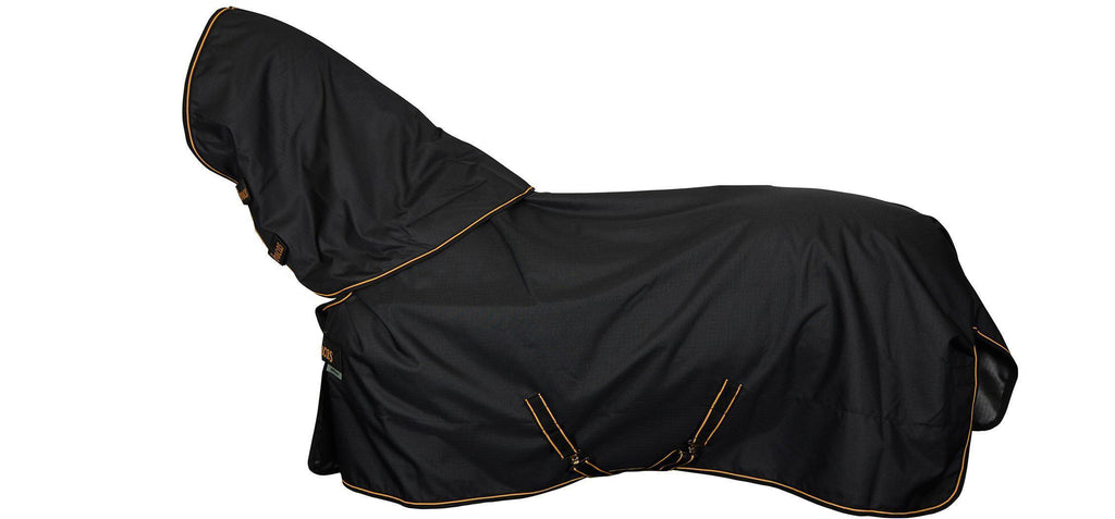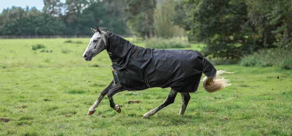 Svart - hals til Irish Turnout black/ gold dekken med 300 g fyll. 300 g isolasjon/fyll. Vanntett 5000 mm og pustende. Rip-stop ytterstoff 1200D sikrer god bestandighet mot påkjenninger. Silk-feel Dermo-care-fôr gir en en myk og behagelig følelse for hesten. Irish Turnout er et funksjonelt utegangsdekken som gir god valuta for pengene og stor fleksibilitet tilpasset hestens behov.